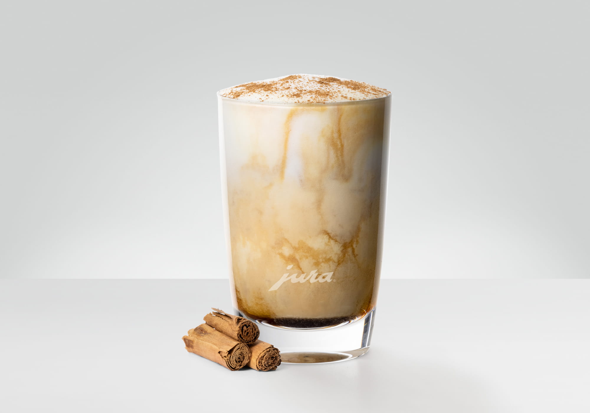 Decorate the Chai Latte frio with cinnamon sticks.